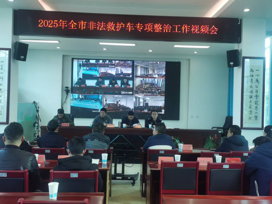 12月17日,保山市卫生健康委员会牵头组织召开全市非法救护车专项整治工作视频会议,深入贯彻落实国家关于非法救护车专项整治工作的决策部署,坚决打击“黑救护”等违法违规行为,切实维护人民群众生命健康权益与正常医疗秩序。会议设市级主会场及各县(市、区)分会场,市卫生健康委、市公安局、市交通运输局、市市场监督管理局等部门负责同志,各级医疗卫生机构及相关单位负责人参加会议。
